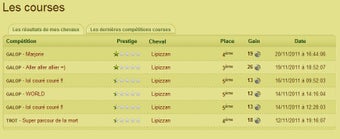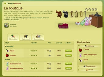 Certains objets permettent d'améliorer les compétences des chevaux, d'avoir des bonus, d'accélérer l'entraînement ou même de les rendre immortels.